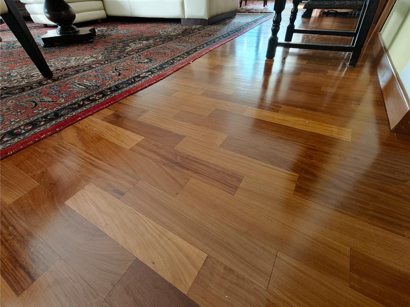 – Pavimenti in legno massello nella zona giorno (PARQUET IPE’ LAPACHO, legno dell’America centrale, molto duro e resistente, solitamente utilizzato per il rivestimento dei ponti delle navi)
