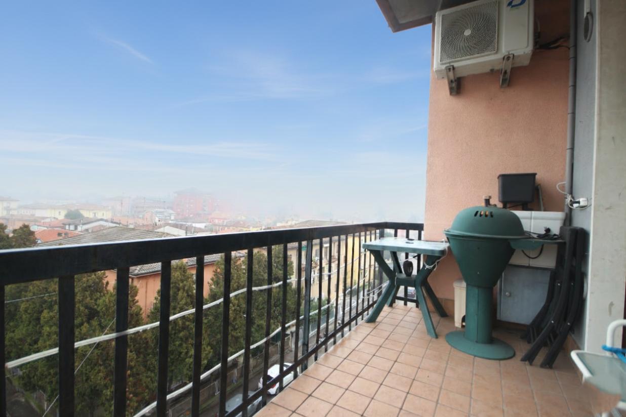In posizione comoda e ben servita, al piano alto con vista aperta, proponiamo ampio appartamento, soluzione pronta ad essere abitata, inserita in condominio ben conservato nelle parti comuni.