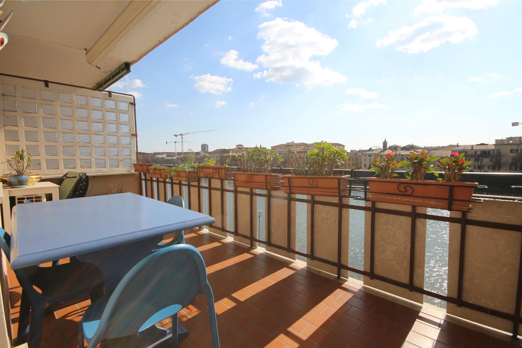 Questa soluzione immobiliare si distingue per il suo terrazzo che si affaccia direttamente sul fiume, comodo per cene o aperitivi all’aperto durante la bella stagione. Il condominio è situato nelle immediate vicinanze di Ponte CastelVecchio.