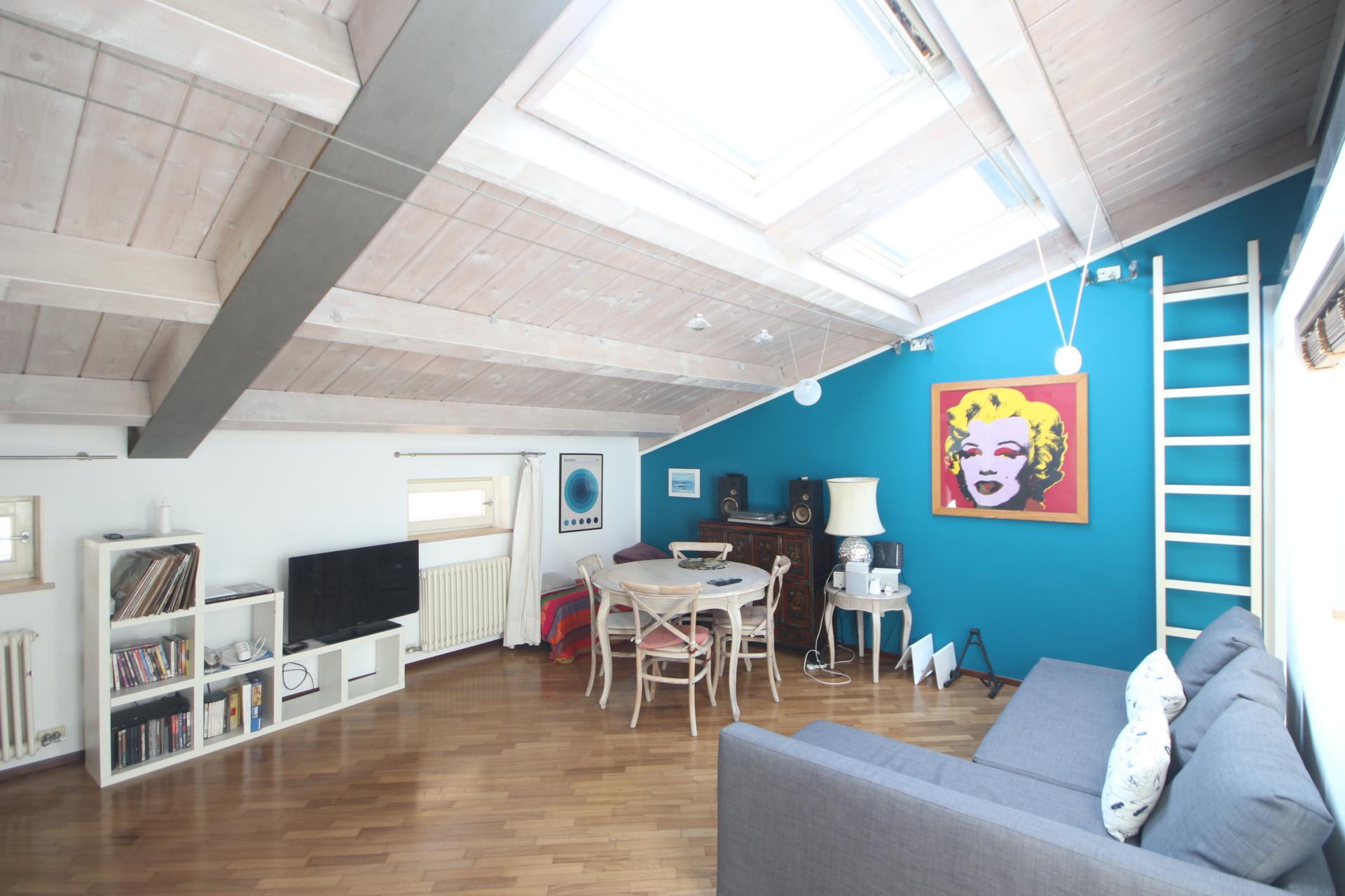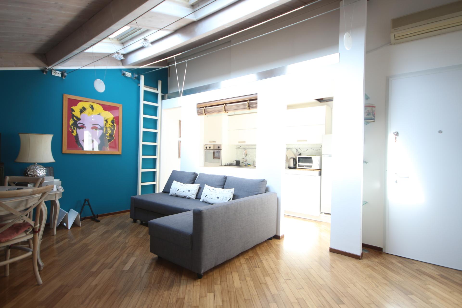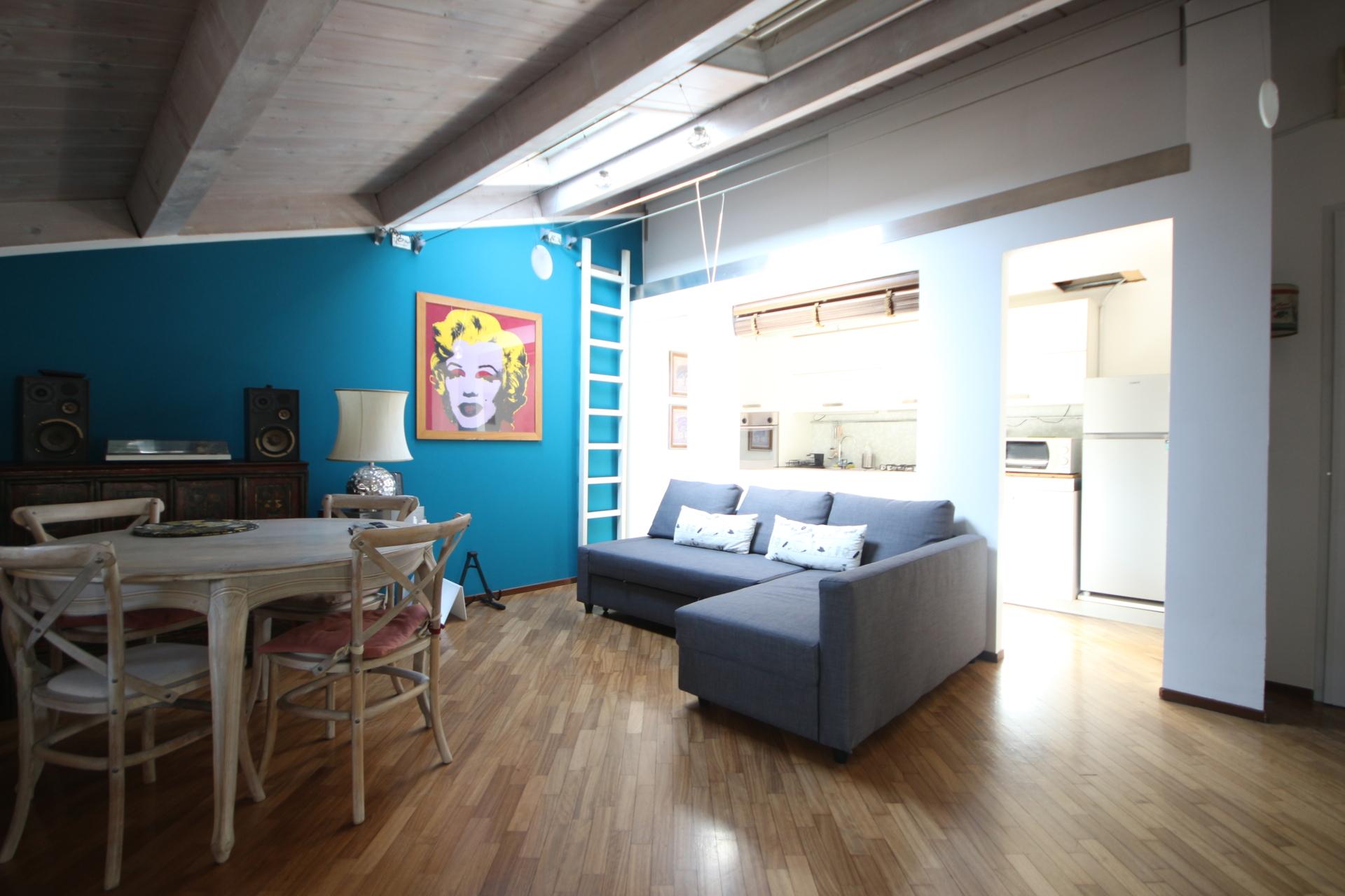 In contesto tranquillo e ben curato, servito da ascensore, proponiamo grazioso appartamento mansardato e totalmente arredato posto all’ultimo piano.