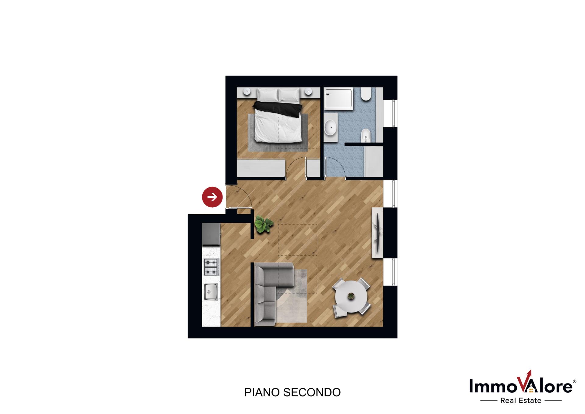 L’immobile si compone di una luminosa zona giorno con cucinotto a vista, una confortevole camera da letto e bagno.